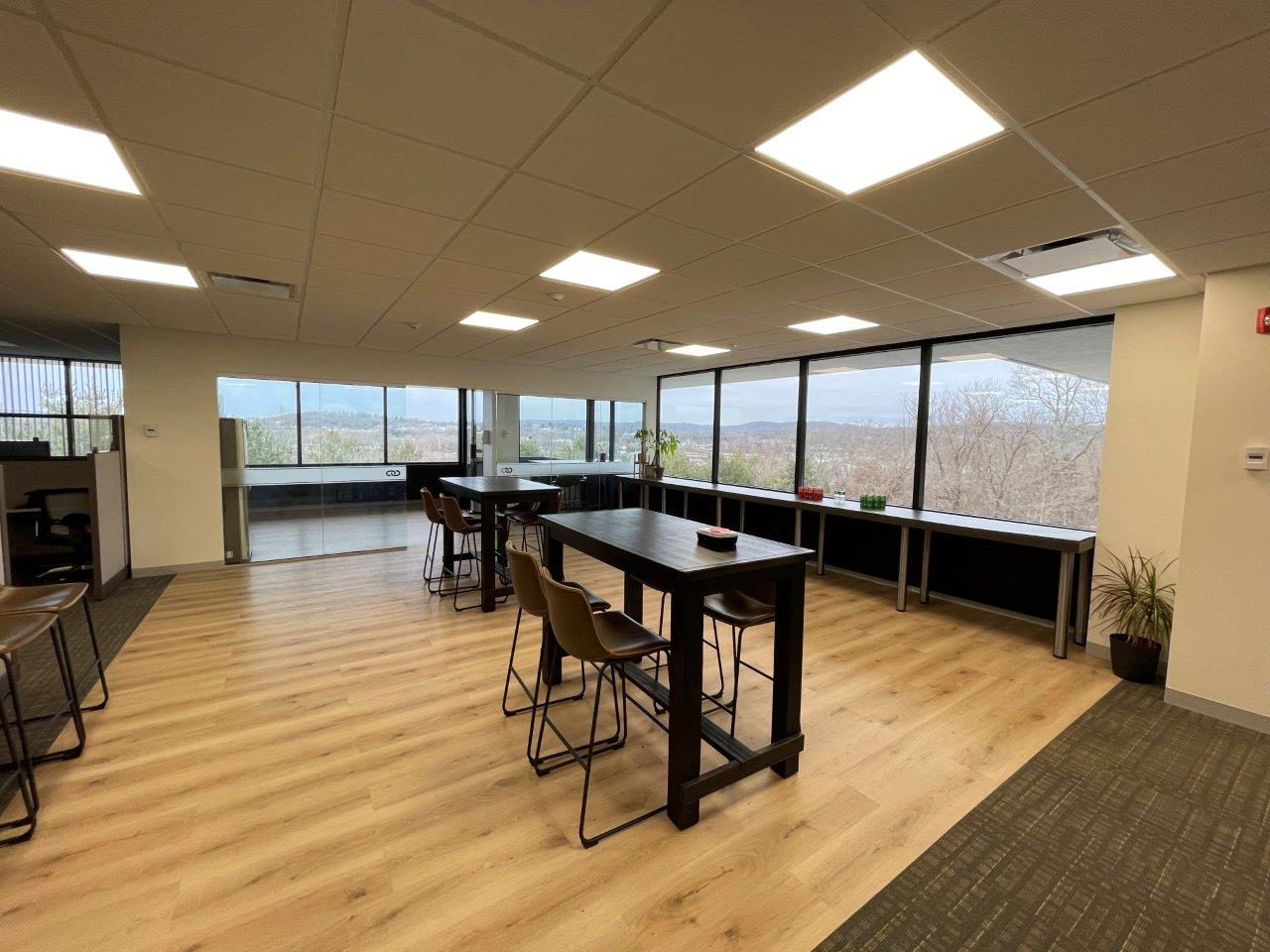 The Mountain View Corporate Center offers a “Office Park” business setting with beautiful views of Danbury CT. Access to the building is provided from both the I-84 East and West exits. It will be convenient for local employees from Danbury, Bethel, Brookfield, and Newtown. Located next to the Mountain View Corporate Center are the Avalon Danbury Apartments. Public Transportation is available with a bus stop nearby. The Corporate Center is convenient to gas stations, restaurants, banks, auto dealerships, movie theaters, and other retail shopping areas. Hotels are conveniently located within minutes of the Corporate Center for the convenience of visiting clients. Corporate Center executives can reserve “covered” parking. The building has full HVAC, newly refurbished lobby areas and new bathroom cores. There are two elevators providing service to all floors including the storage areas in the basement level.